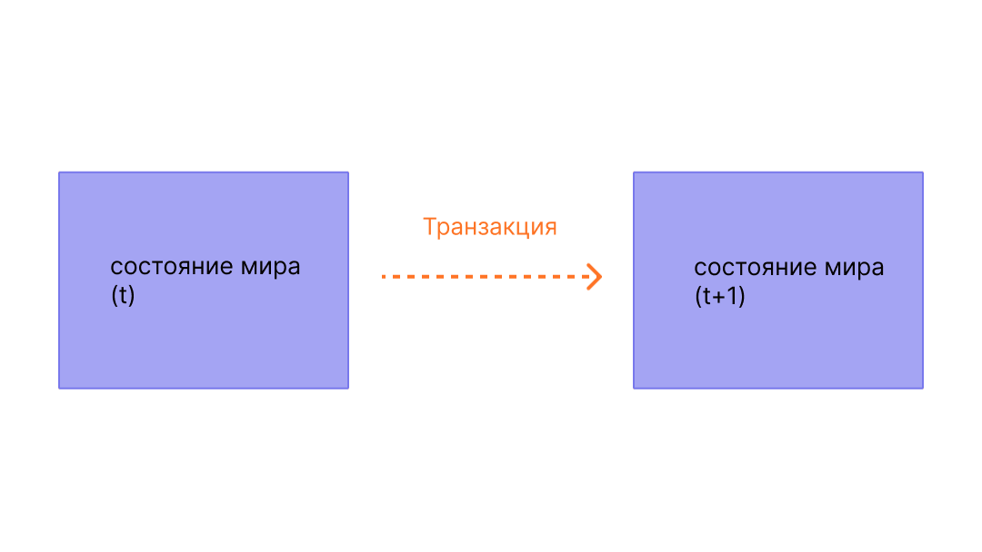 Транзакция Ethereum относится к действию, инициированному внешним аккаунтом, то есть аккаунтом, управляемым человеком, а не контрактом. Например, если Боб отправляет Алисе 1 ETH, аккаунт Боба должен быть дебетован, а счет Алисы — кредитован. Это действие по изменению состояния происходит внутри транзакции.